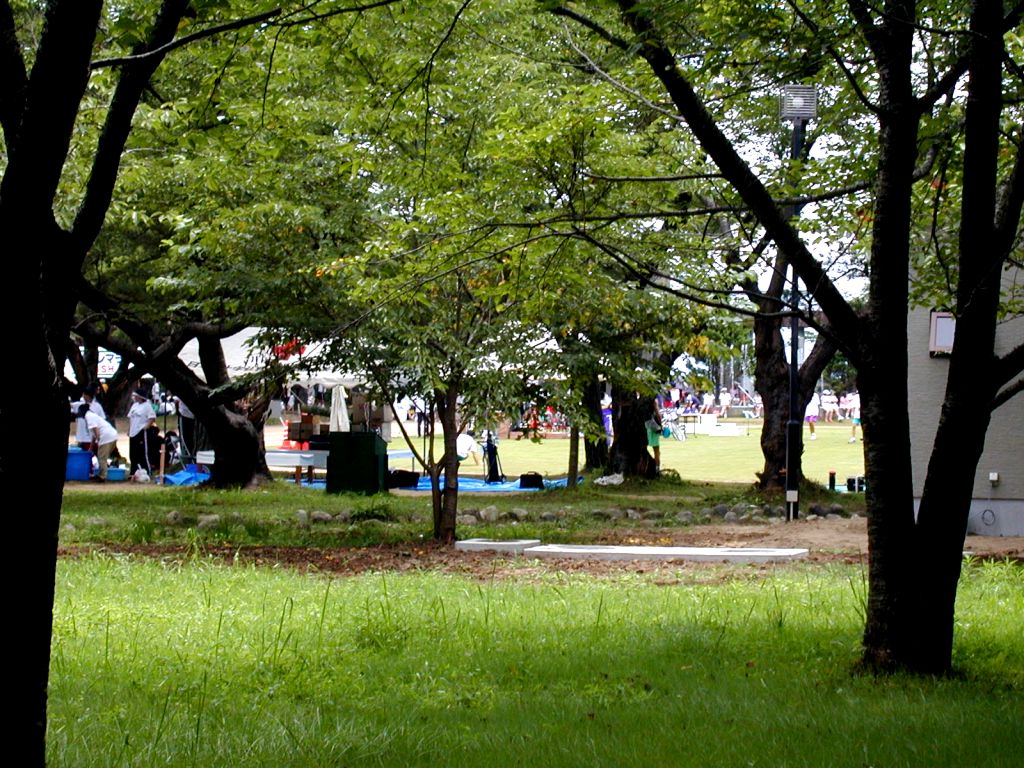 | これは、フルマラソンよりも、こたえた! しはらく、木陰で休まないと、ほんとうに 死んでしまいそうだ。 会場には、丁度いい木陰がいっぱいある のだった。 |