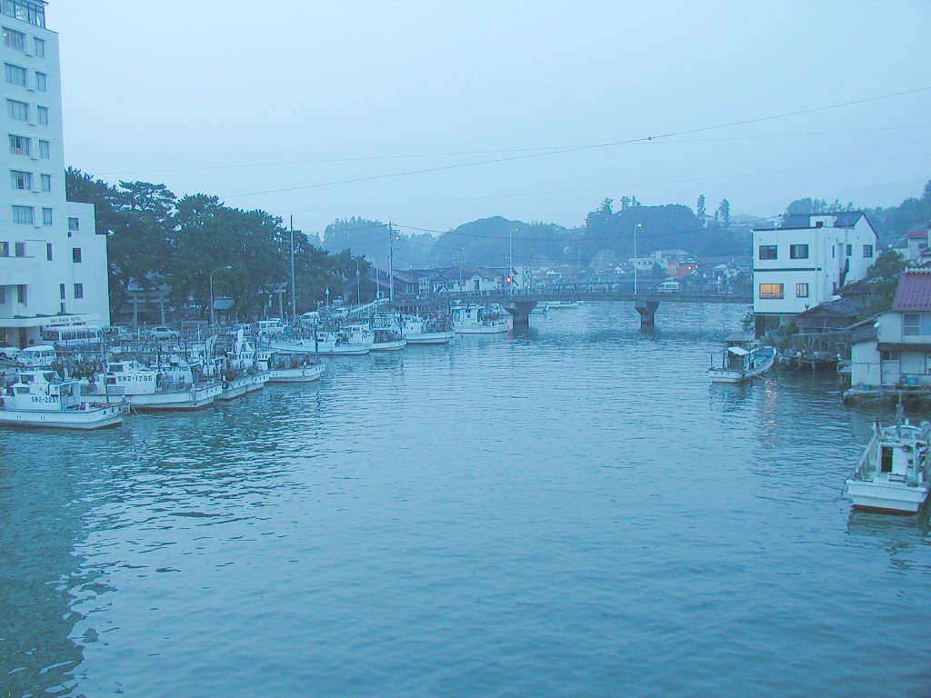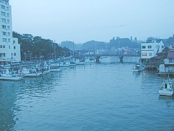 日が暮れたので、漁村の風景を見ながら旅館へ向かった。