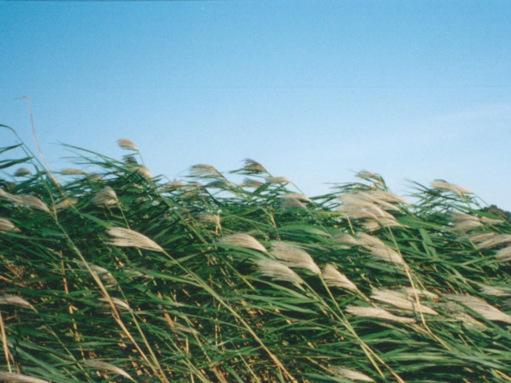 風に吹かれるススキ